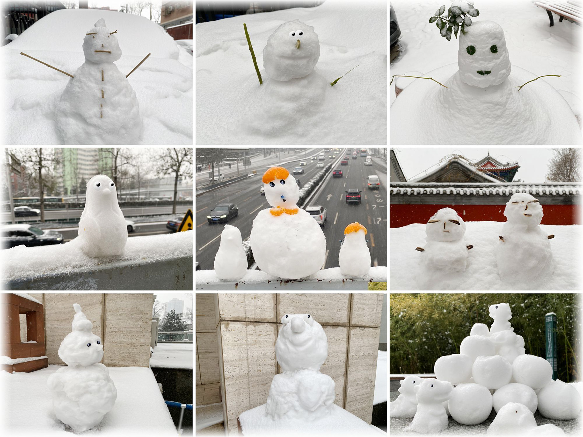 In winter, children create snowmen with different shapes using snow, bringing joy to winter.