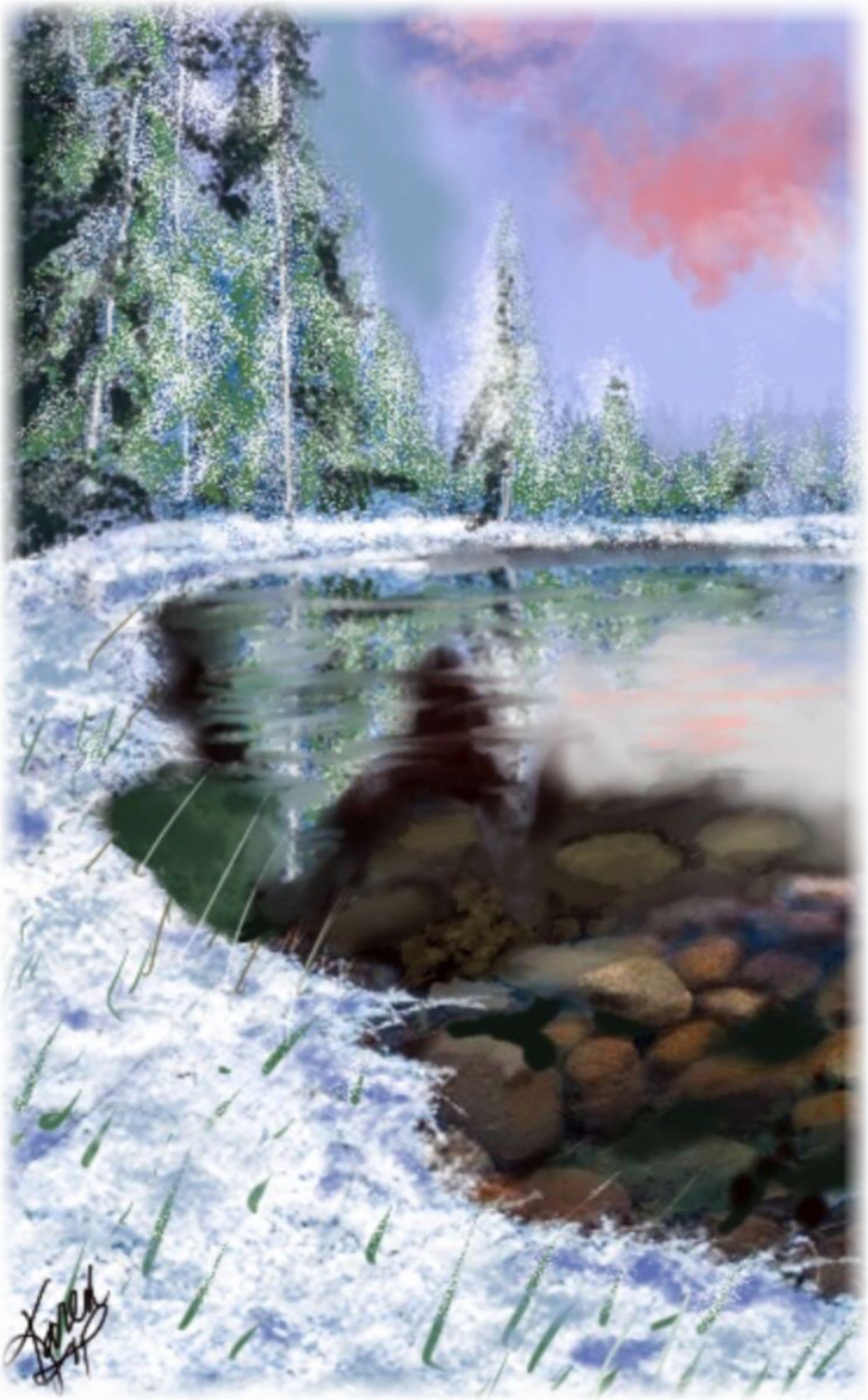 Two lovers embrace the season, that begins with a Moorhen family. They share in their delight, with two little winter sprites. And their lives have new beginnings.